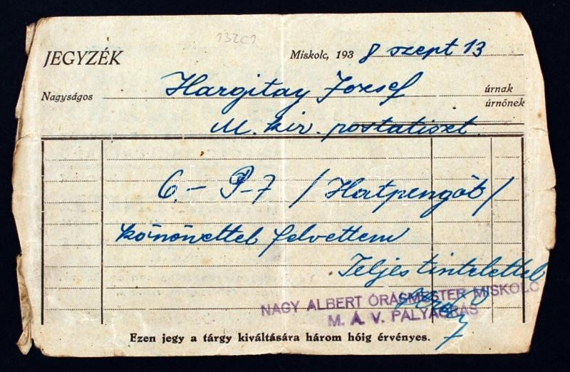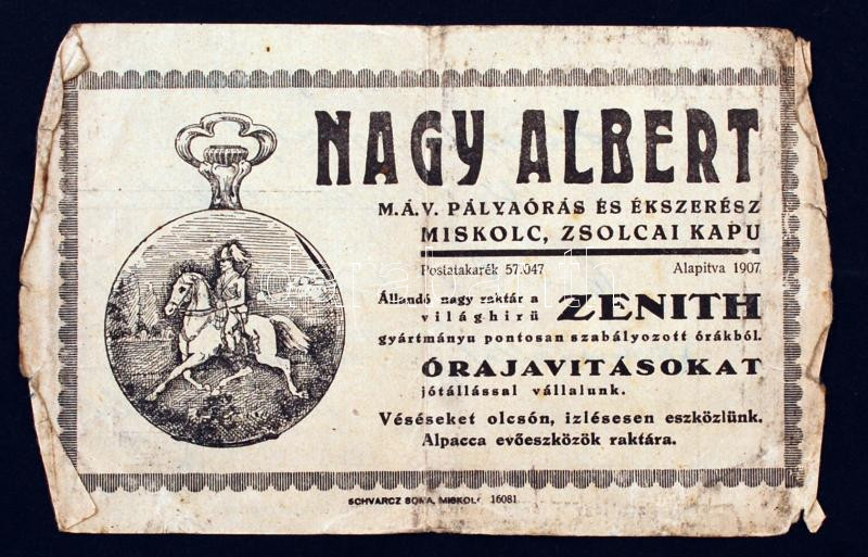 Nagy Albert M.Á.V. pályaórás és ékszerész reklám nyomtatványa,kissé vi... https://www.darabanth.com/de/233-Fernauktion/233.0/Andere-Sammelgebiete/Werbungen~400020/Nagy-Albert-MAV-palyaoras-es-ekszeresz-reklam-nyomtatvanya-kisse-viseltes-lapszel-11x~II1057083