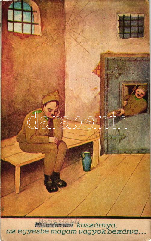 Komáromi kaszárnya, az egyesbe magam vagyok bezárva... / Hungarian mil... https://www.darabanth.com/de/233-Fernauktion/233.0/Ansichtskarten/Militaria~77/Komaromi-kaszarnya-az-egyesbe-magam-vagyok-bezarva-Hungarian-military-soldier-in-captive-~II1057342
