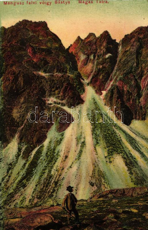 Tátra, Menguszfalvi völgy, Bástya; Fuchs Gyula felvétele és kiadása / valley, peak