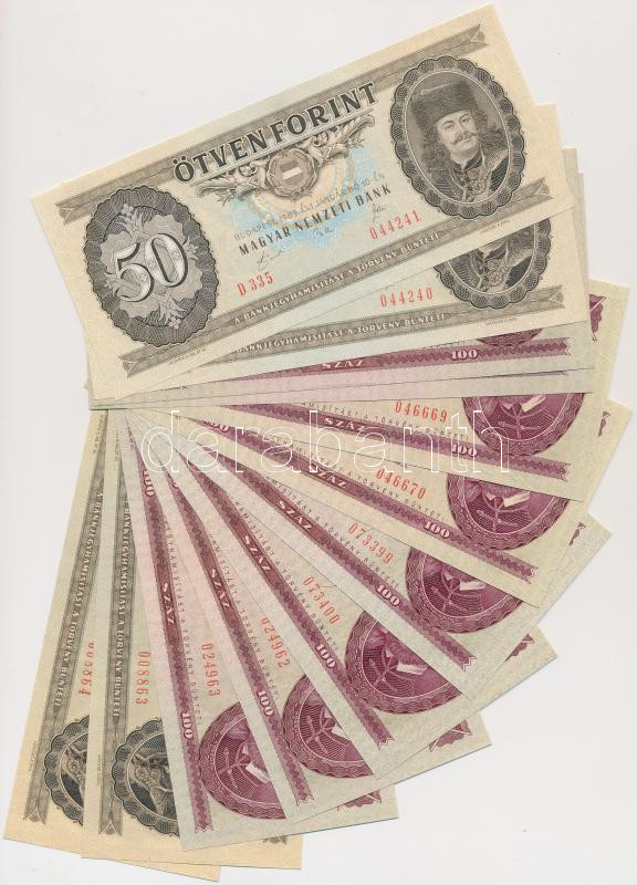 Beschreibung: 1975. 100Ft (2x) + 1984. 100Ft (2x) sorszámkövetÅ‘k + 1986. 50Ft (2x) sorszámkövetÅ‘k + 1989. 50Ft (2x) sorszámkövetÅ‘k + 100Ft (2x) sorszámkövetÅ‘k + 1993. 100Ft (2x) sorszámkövetÅ‘k, néhány papÃrráncos T:I,I- hajtatlanok