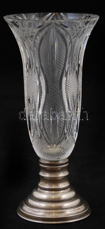 Beschreibung: Ezüst (Ag.) talpas kristály kehely, jelzett, apró csorba a peremén, m:15,5 cm