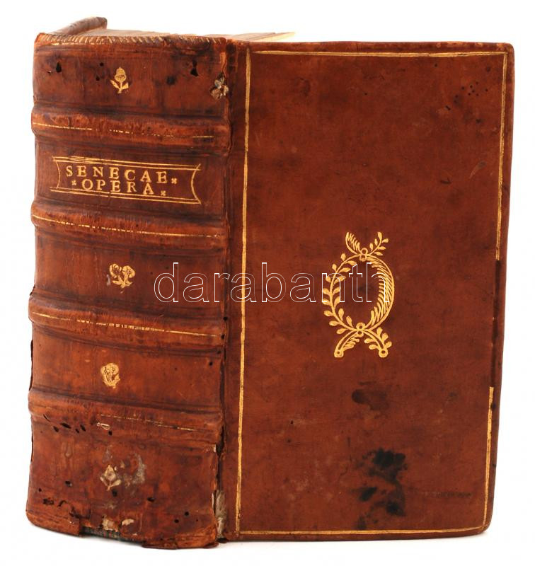 Beschreibung: Senecae opera. Johanni Vignon, 1604, Lugduni. Aranyozott kiadói egészbőr kötésben, gerinc sérült, címoldal hiányzik.
