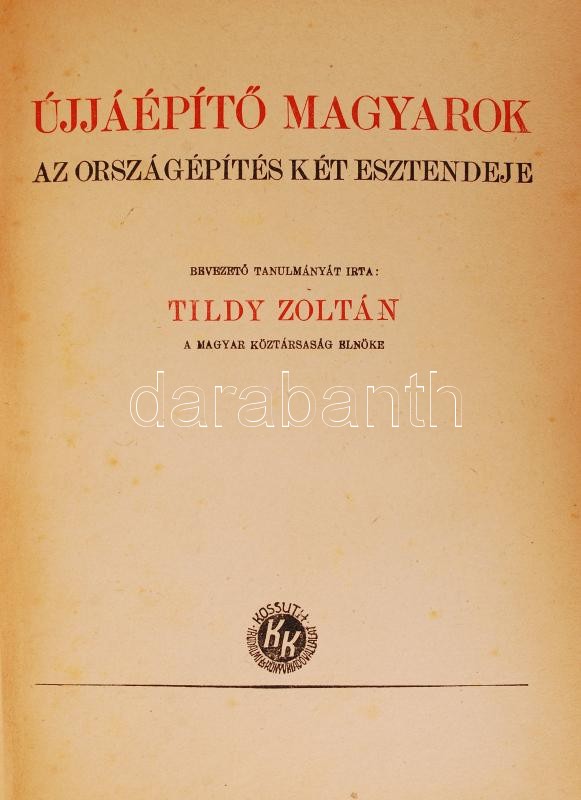 Újjáépítő magyarok. Az országépítés két esztendeje. Bevezető tanulmányt írta: Tildy Zoltán, a Magyar Köztársaság elnöke. Bp., Kossuth. Kiadói aranyozott félvászon kötés, illusztrált, gerincnél kissé sérült, kopottas állapotban.