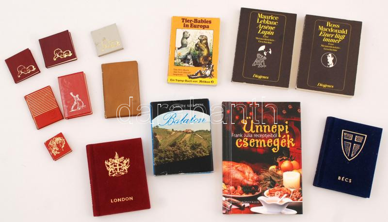 Vegyes magyar és idegen nyelvű mini- és mikrokönyv tétel, különféle témákban: helytörténet, propaganda, szépirodalom, stb., különféle formátumban, némelyikük limitált kiadású, sorszámozott példány