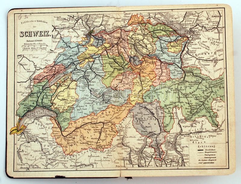 Beschreibung: Meyers Reisebücher: Schweiz. Leipzig - Wien, 1895, Bibliographisches Institut. Sok térképpel. Szakadt gerincű díszes vászonkötésben, egyébként jó állapotban.