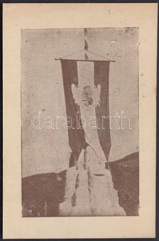 Beschreibung: 1939 a Magyar Szövetség Ereklyés Országzászló Nagybizottsága pártoló tagsági jegye, hátoldalán az ereklyés országzászló fényképével