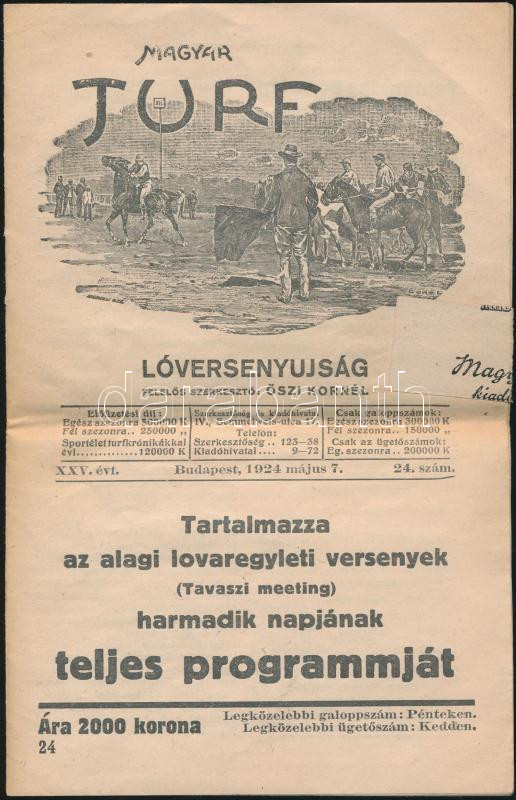 1924 Bp., A Magyar Turf Lóversenyújság XXV. évfolyamának 24. száma, me... https://www.darabanth.com/de/234-Fernauktion/234.0/Andere-Sammelgebiete/Drucksachen~40003/1924-Bp-A-Magyar-Turf-Loversenyujsag-XXV-evfolyamanak-24-szama-mely-tartalmazza-az-alagi-~II1068218