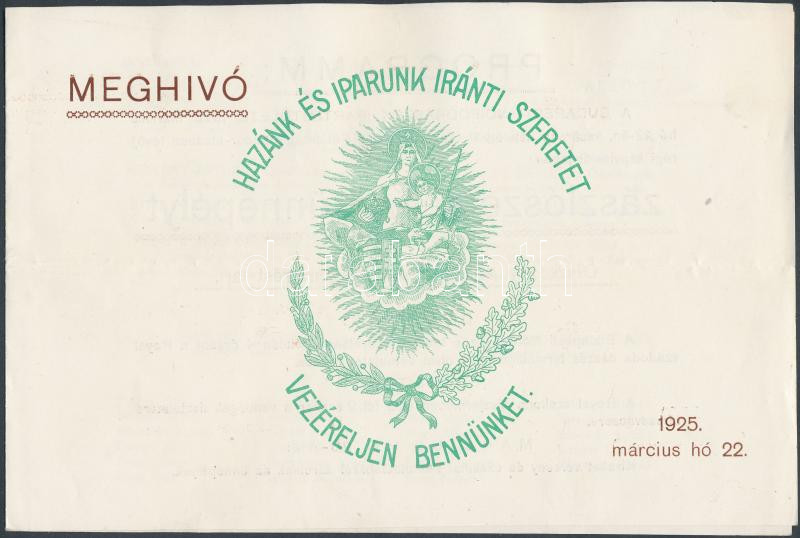 Beschreibung: 1925 Meghívó a Budapesti Nőifodrászok Ipartestületének zászlószentelési ünnepélyére, Auguszta főhercegnő részvételével