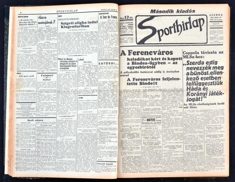 1938 A Sporthírlap II. fél évfolyama bekötve, jó állapotban https://www.darabanth.com/de/234-Fernauktion/234.0/Andere-Sammelgebiete/Drucksachen~40003/1938-A-Sporthirlap-II-fel-evfolyama-bekotve-jo-allapotban~II1065546
