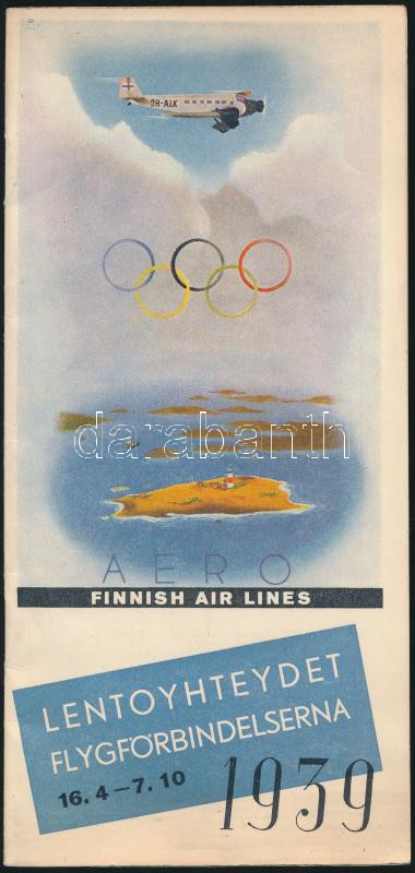 Beschreibung: 1939 A finn légitársaság repülőmenetrendje /