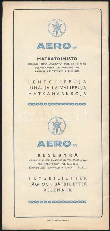 1939 A finn légitársaság repülőmenetrendje /