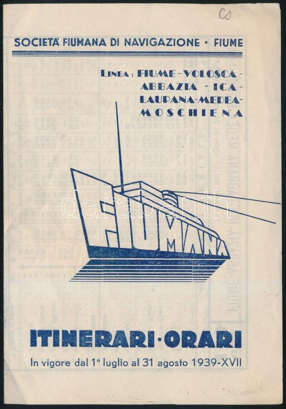 1939 Fiume, Societá Fiumana di Navigazione Fiume-Volosca-Abbazia-Ica-L... https://www.darabanth.com/de/234-Fernauktion/234.0/Andere-Sammelgebiete/Drucksachen~40003/1939-Fiume-Societa-Fiumana-di-Navigazione-Fiume-Volosca-Abbazia-Ica-Laurana-Medea-Moschiena-hajoz~II1068179