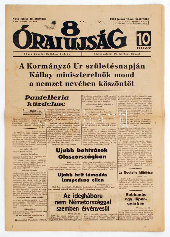 1943 A 8 Órai Újság XXIX. évfolyamának 132. száma, címlapon Horthy Mik... https://www.darabanth.com/de/234-Fernauktion/234.0/Andere-Sammelgebiete/Drucksachen~40003/1943-A-8-Orai-Ujsag-XXIX-evfolyamanak-132-szama-cimlapon-Horthy-Miklos-szuletesnapjat-~II1037230