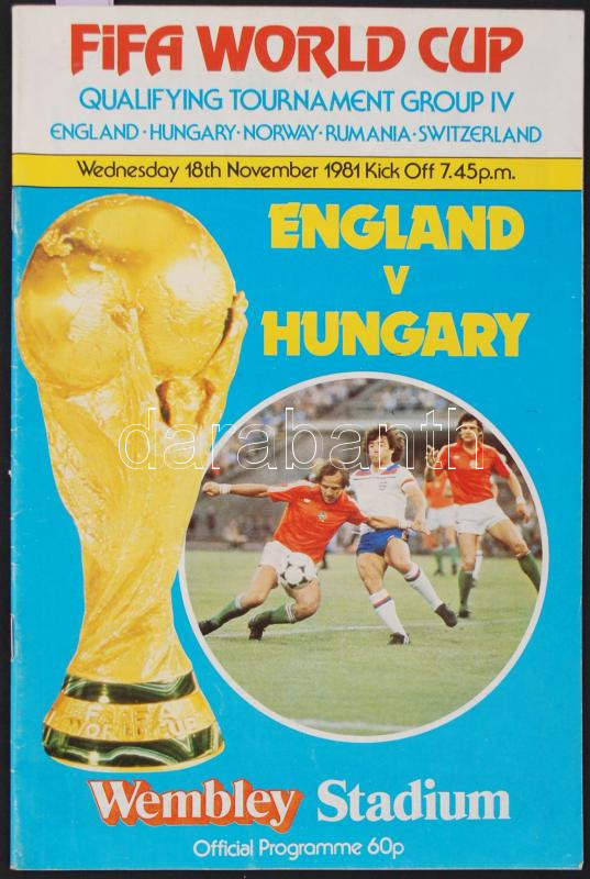1981 Angol-Magyar válogatott mérkőzés eredeti programfüzete/ FIFA Worl... https://www.darabanth.com/de/234-Fernauktion/234.0/Andere-Sammelgebiete/Drucksachen~40003/1981-Angol-Magyar-valogatott-merkozes-eredeti-programfuzete-FIFA-World-Cup-Wembley-Stadium-O~II1065593