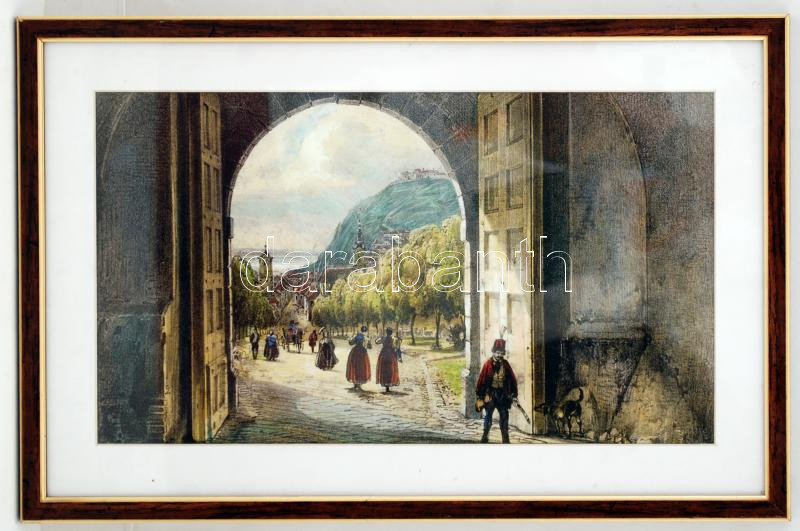 Bécsi kapu 1840 körül, modern nyomat, üvegezett keretben, 21×38 cm https://www.darabanth.com/de/234-Fernauktion/234.0/Andere-Sammelgebiete/Drucksachen~40003/Becsi-kapu-1840-korul-modern-nyomat-uvegezett-keretben-21C39738-cm~II1036831