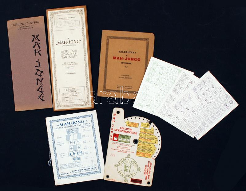 cca 1920-1930 A Mah-Jong kínai játék szabályzata, teljes számítási táb... https://www.darabanth.com/de/234-Fernauktion/234.0/Andere-Sammelgebiete/Drucksachen~40003/cca-1920-1930-A-Mah-Jong-kinai-jatek-szabalyzata-teljes-szamitasi-tablazata-es-egyeb-kel~II1068355