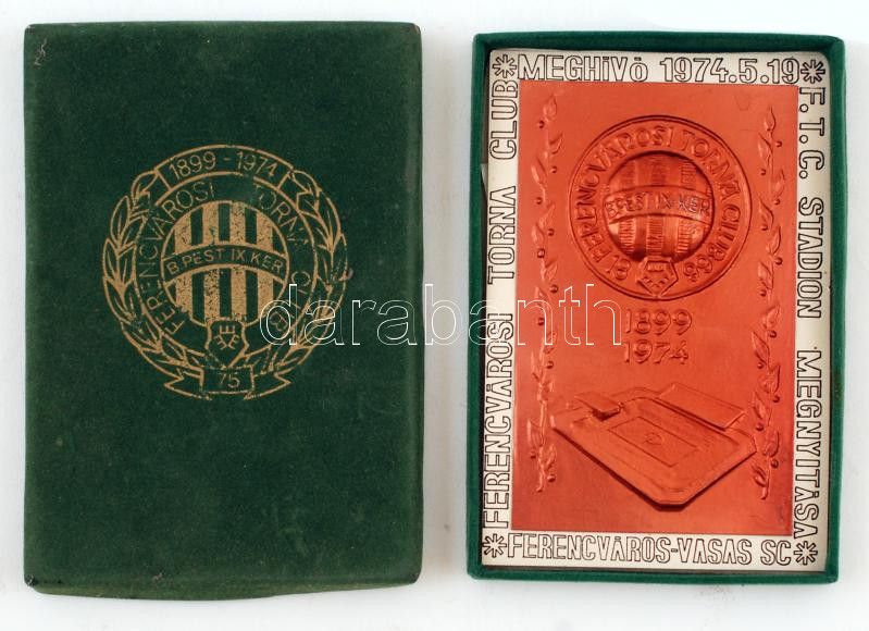1974 FTC pályaavató mérkőzésére készített díszplakett eredeti díszdobo... https://www.darabanth.com/de/234-Fernauktion/234.0/Andere-Sammelgebiete/Flohmarkt~40024/1974-FTC-palyaavato-merkozesere-keszitett-diszplakett-eredeti-diszdobozban-emlekbelyegg~II1065381