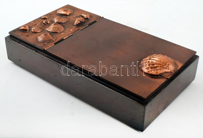 Beschreibung: Kagylómintával díszített réz zenélő doboz, működőképes állapotban, 20x11x4 cm