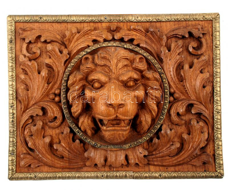 Oroszlán fejes falikép, fa, réz keretben, 25×32 cm https://www.darabanth.com/de/234-Fernauktion/234.0/Andere-Sammelgebiete/Flohmarkt~40024/Oroszlan-fejes-falikep-fa-rez-keretben-25C39732-cm~II1067125