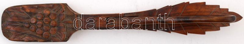 Beschreibung: Szőlőmotívummal díszített dekoratív, faragott fa húsfogó, kis sérüléssel h: 24,5 cm