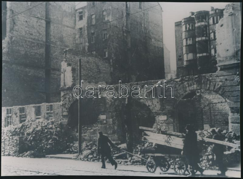Beschreibung: 1945 Romos Budapest a háború után, mentik ami még menthető, Dr. Kunszt János (1892–1960) jelzetlen felvétele, későbbi nagyítás, 17,5x23 cm