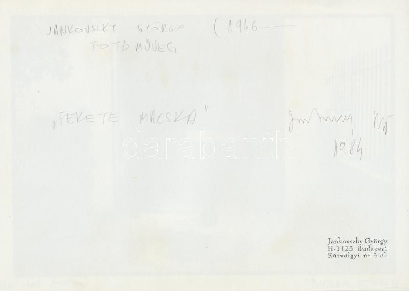 1984 Jankovszky György(1946-): Fekete macska, feliratozva, aláírt, pec... https://www.darabanth.com/de/234-Fernauktion/234.0/Andere-Sammelgebiete/Foto~40038/1984-Jankovszky-Gyorgy1946-Fekete-macska-feliratozva-alairt-pecsettel-jelzett-23x17-cm~II1070686