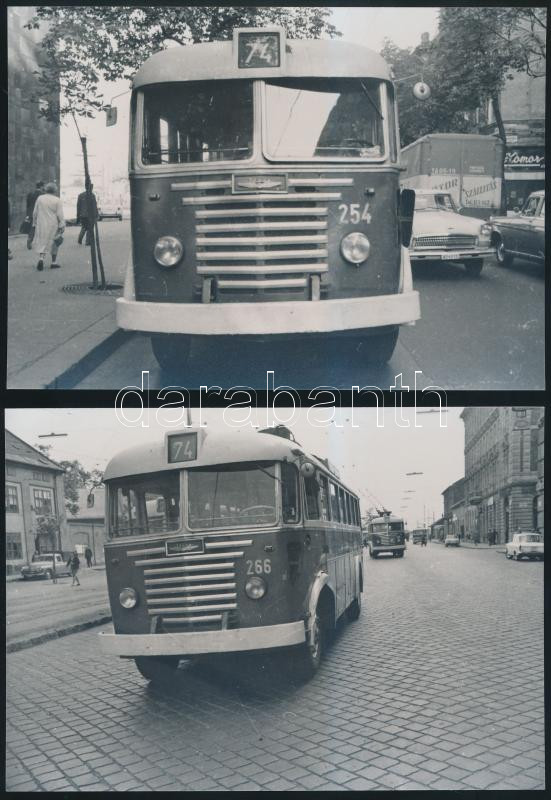 Beschreibung: Budapest, a 74-es troli a Baross utcában, 2 db fotó, 15x10 cm