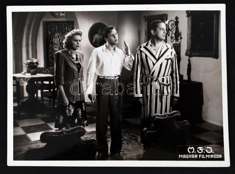 Beschreibung: Magyar Filmiroda: Hajmássy Miklós partnereivel "Az ördög nem alszik" c. régi magyar filmben, MFI pecsétjével a hátoldalon, 12x8,5cm