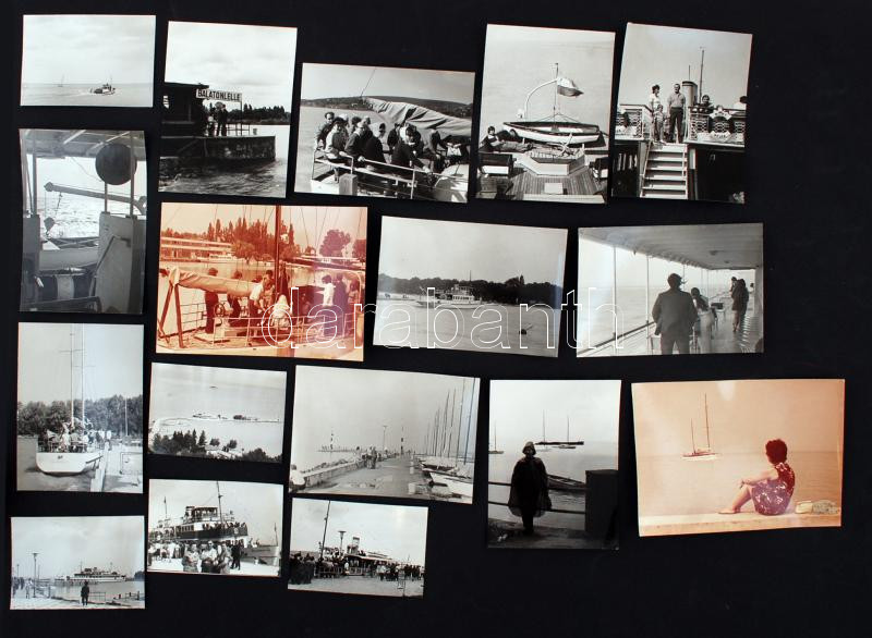 Beschreibung: cca 1950-1980 Szabó Sándor fényképei balatoni hajókról, kikötőkről és emlékekről, 17 db kfl méretű fotó, 6x9 cm és 11x15 cm között