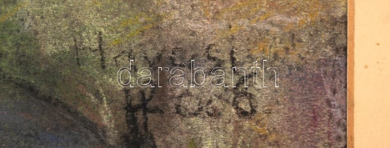 Beschreibung: Szünderné Havasi Erzsébet (1947-): Lovasberényi utca. Pasztell, papír, jelzett, keretben, 30×40 cm