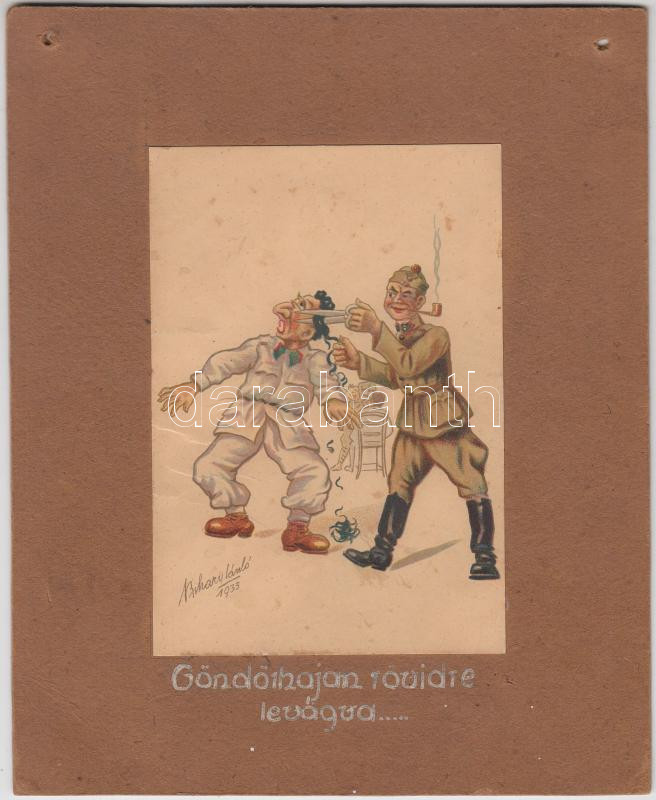 Beschreibung: 1923 Bihary Lészló: Göndör hajam rövidre levágva. Zsidóellenes propaganda. Kőnyomat / Litho anti-judaica propaganda 20x24 cm