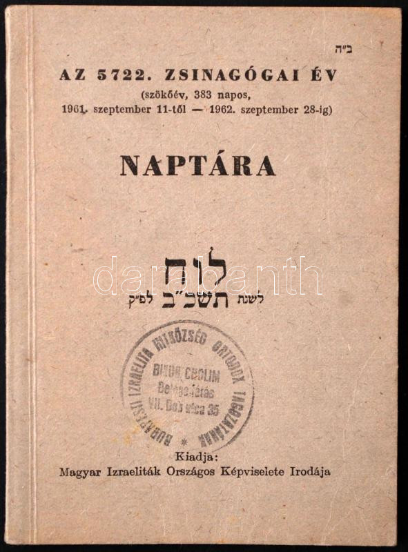 Az 5722. Zsinagógai év (szökőév, 383 napos 1961 szeptember 11-től- 196... https://www.darabanth.com/de/234-Fernauktion/234.0/Andere-Sammelgebiete/Judaica~40042/Az-5722-Zsinagogai-ev-szokoev-383-napos-1961-szeptember-11-tol-1962-szeptember-28-ig-napt~II1064550