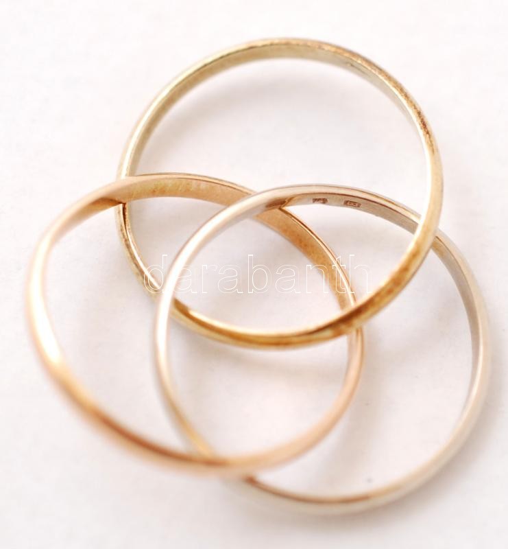 14 K 3 részes arany gyűrű, 56-os méret, jelzett / 14 C gold ring 3,37g https://www.darabanth.com/de/234-Fernauktion/234.0/Andere-Sammelgebiete/Juwelen~40161/14-K-3-reszes-arany-gyuru-56-os-meret-jelzett-14-C-gold-ring-3-37g~II1067447