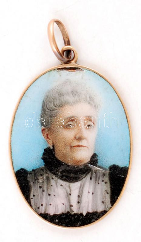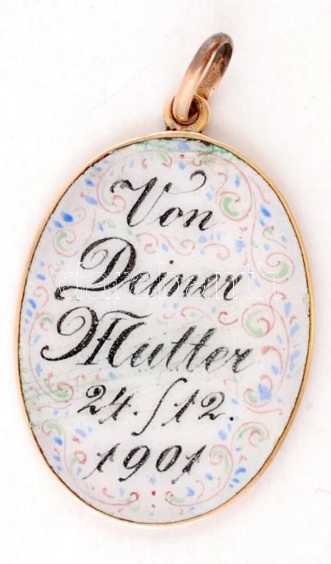 1901 Arany (Au) 14 K keretű porcelán medál, Anyádtól - felirattal / Me... https://www.darabanth.com/de/234-Fernauktion/234.0/Andere-Sammelgebiete/Juwelen~40161/1901-Arany-Au-14-K-keretu-porcelan-medal-Anyadtol--felirattal-Medal-with-gold-frame-Fro~II1067364