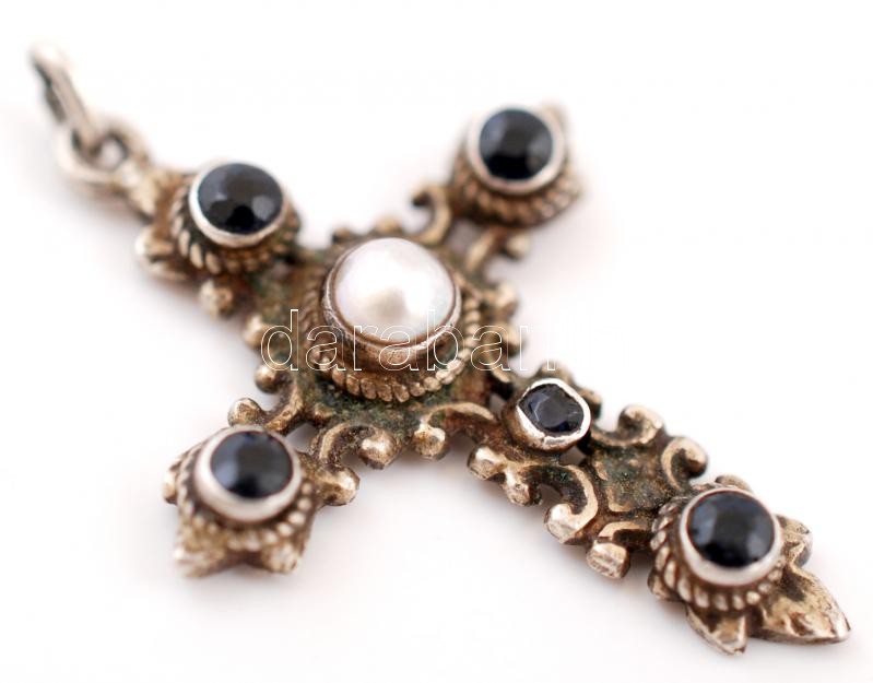 Antik ezüst (Ag.) kereszt függő, szintetikus kövekkel, és tenyésztett ... https://www.darabanth.com/de/234-Fernauktion/234.0/Andere-Sammelgebiete/Juwelen~40161/Antik-ezust-Ag-kereszt-fuggo-szintetikus-kovekkel-es-tenyesztett-gyonggyel-jelzes-nel~II1066588