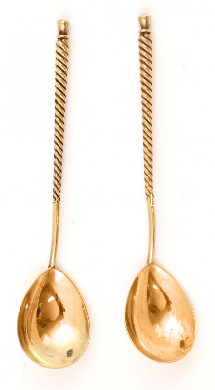 Orosz, aranyozott ezüst kiskanál, fémjel, Ag.: 29,6gr., mesterjel, 2db... https://www.darabanth.com/de/234-Fernauktion/234.0/Andere-Sammelgebiete/Juwelen~40161/Orosz-aranyozott-ezust-kiskanal-femjel-Ag-29-6gr-mesterjel-2db-h12cm-3Cbr3E~II1069156