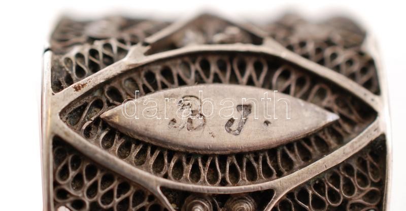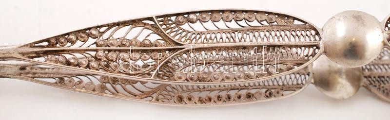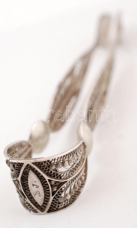 Beschreibung: cca 1850 Gazdagon díszített levélmotívumos ezüst (Ag.) antik cukorfogó, "B. J." ötvösmonogrammal, h: 16,5 cm, nettó 28 g