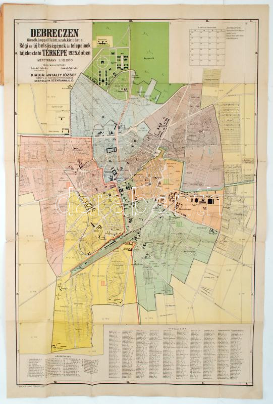 1925 Debrecen szabad királyi várps közigazgatási és választókerületi térképe, kiadja Antalfy József könyv és papír kereskedése, M. Kir. Állami Térképészet, 62x94 cm