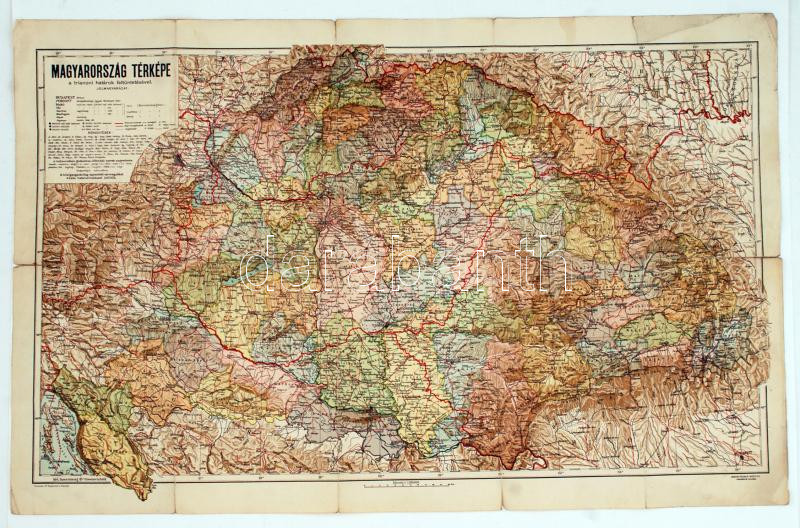 Magyarország térképe a trianoni határok feltüntetésével. 1:1500 000. Tervezte: Dr. Kogutowicz Károly, Magyar Földrajzi Intézet Rt., hajtogatva, hajtás mentén néhol szakadt, 44x68cm