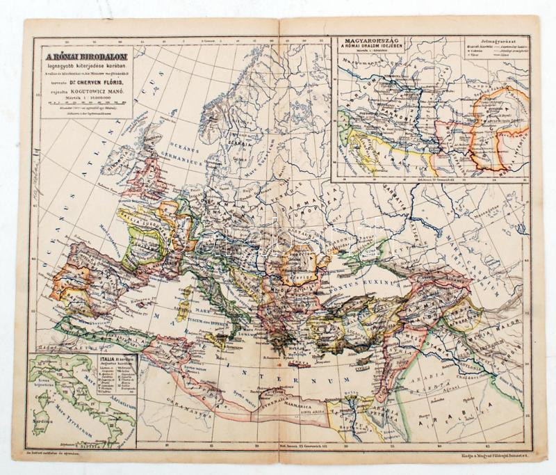 cca 1900 A római birodalom legnagyobb kiterjedése korában, tervezte Dr. Cherven Flóris, rajzolta Kogutowicz Manó, 1:18 000 000, Magyar Földrajzi Intézet, 34x29 cm
