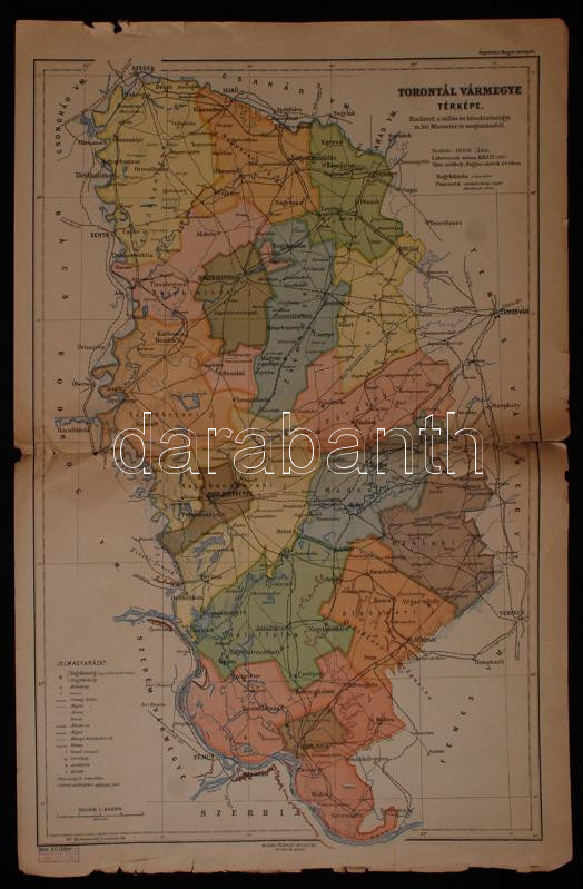 cca 1915 Torontál Vármegye térképe. 1::400 000, Kiadatott a vallás és közoktatásügyi m. kir. Miniszter úr megbízásából. Magyar Földrajzi Intézet. Kissé viseltes állapotban. 48x32cm