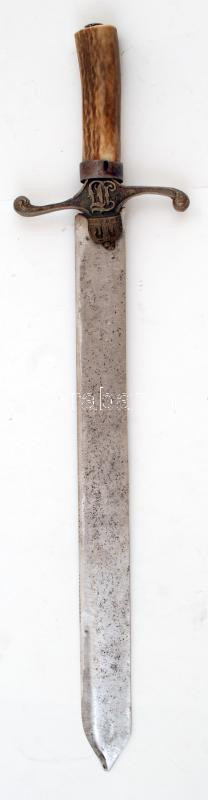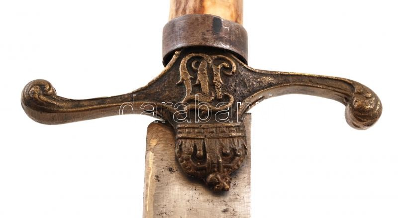 Beschreibung: Csont markolatú díszkard, éles heggyel, monogrammal és a Szent Koronával díszített fém keresztvassal, pengehossz: 40 cm, teljes hossz: 52 cm