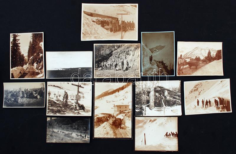 Beschreibung: cca 1914-1918 Fényképek az I. világháborúból, 13 db kfl méretű fotó, 6x10 cm és 14x10 cm közötti méretekben