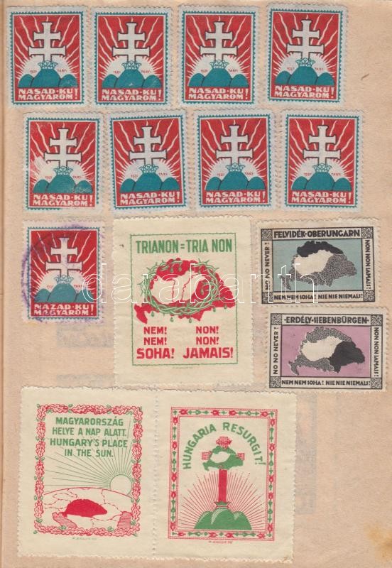 Levélzáró gyűjtemény kb 300 db magyar levélzáró, benne Magyar királyok sorozat, Magyar vértanúk, Jézus keresztre feszítése, irredenta levélzárók, Hét vezér.... Füzetben