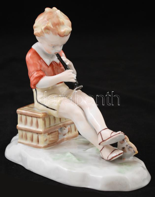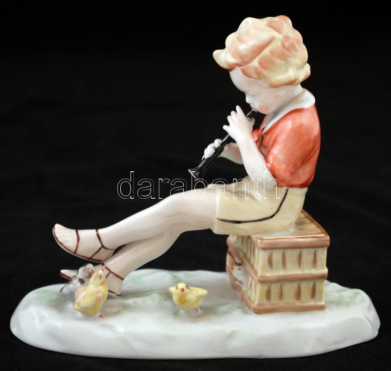 Beschreibung: Metzler és Ortloff Kiscsirkének furulyázó fiúcska, jelzett, hibátlan, h:16cm