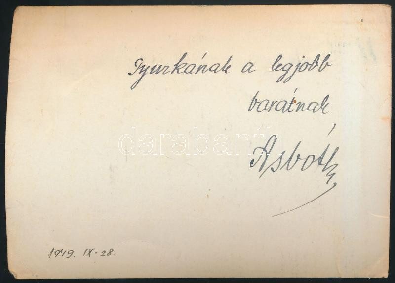 1919 Asbóth József (1917-1986) magyar teniszbajnok, teniszedző aláírás... https://www.darabanth.com/de/234-Fernauktion/234.0/Andere-Sammelgebiete/Signatur~40036/1919-Asboth-Jozsef-1917-1986-magyar-teniszbajnok-teniszedzo-alairasa-foton~II1068593