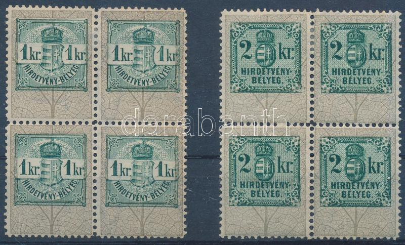Beschreibung: 1891 Hirdetvénybélyeg 1kr, 2kr 4-es tömbökben