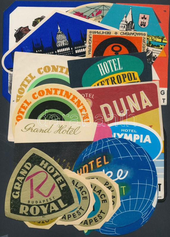 Budapesti hotel reklám matricái, bőrönd címkéi, 29 db https://www.darabanth.com/de/234-Fernauktion/234.0/Andere-Sammelgebiete/Werbungen~40160/Budapesti-hotel-reklam-matricai-borond-cimkei-29-db~II954275