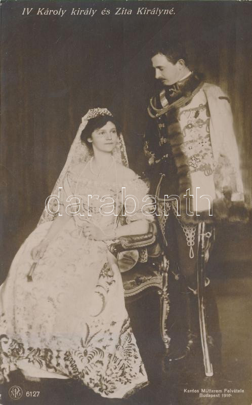 IV Károly és Zita királyné, Kardos felvétele / IV Charles, Zita https://www.darabanth.com/de/234-Fernauktion/234.0/Ansichtskarten/Herrscher-Politiker-Konigshauser~40151/IV-Karoly-es-Zita-kiralyne-Kardos-felvetele-IV-Charles-Zita~II1068701