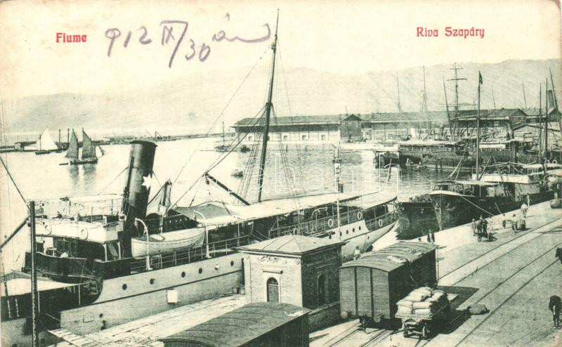 Fiume, Riva Szapáry / port, steamship https://www.darabanth.com/de/234-Fernauktion/234.0/Ansichtskarten/Kroatien~9/Fiume-Riva-Szapary-port-steamship~II1064127